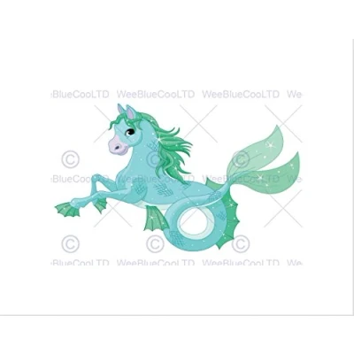 Wee Blue Coo PAINTING SURREAL CARTOON MERMAID HORSE FISH CHILDREN KIDS FRAMED PRINT B12X8383
