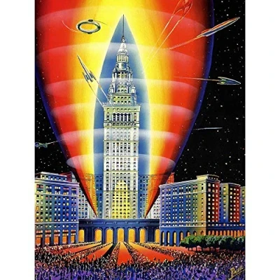 Wee Blue Coo Painting Surreal Fantasy Futuristic Building Spaceship City USA Art Print Poster Wall Decor 12X16 Inch