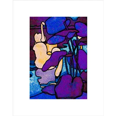 Wee Blue Coo PAINTING SWAN RIVER PLANTS PURPLE BLACK FRAME FRAMED ART PRINT PICTURE B12X12598