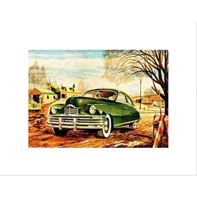 Wee Blue Coo Painting Transport Car Automobile Classic Packard Green Wall Art Print