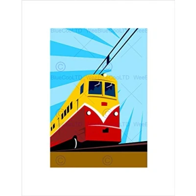 Wee Blue Coo Painting Transport Electric Train Railway Retro Engine Wall Art Print