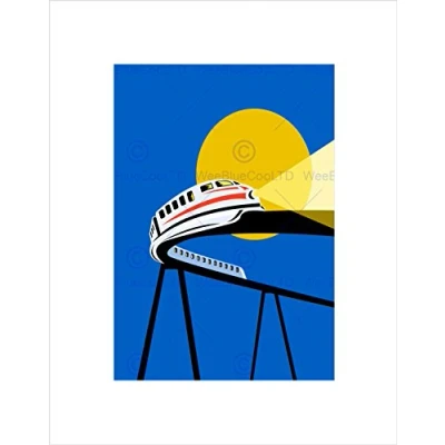Wee Blue Coo PAINTING TRANSPORT MONORAIL RAILWAY TRAIN SUN BLACK FRAMED ART PRINT B12X8449