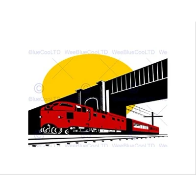 Wee Blue Coo Painting Transport Train Railway Bridge Sun Wall Art Print