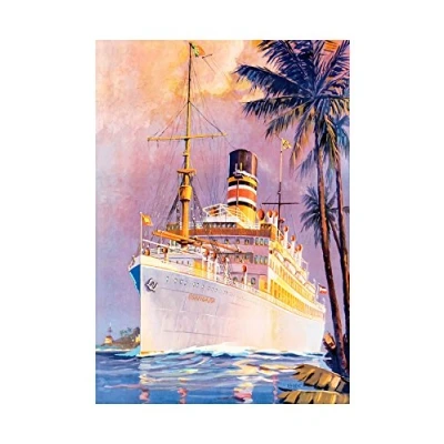Wee Blue Coo Painting Travel Transport Ocean Liner Ship Boat Palm Tree Wall Art Print