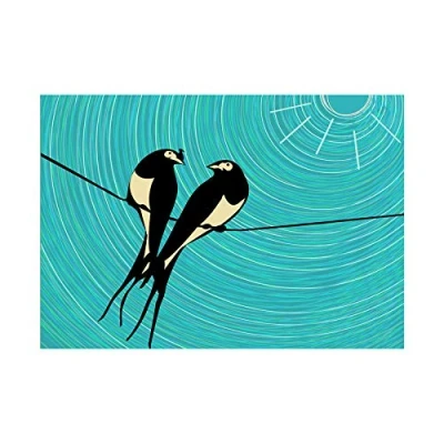 Wee Blue Coo Painting Two Swallows Illustration Sun Birds Wall Art Print