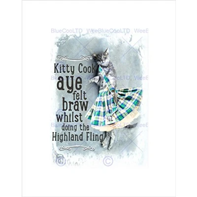 Wee Blue Coo PAINTING TYPOGRAPH DANCING HIGHLAND CAT KITTY COOK FRAMED ART PRINT B12X3863