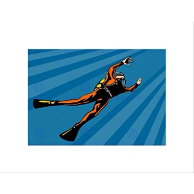 Wee Blue Coo Painting Underwater Diving Scuba Sea Flippers Wall Art Print