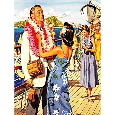 Wee Blue Coo Painting Vacation Scene Cruise Ship Deck Hawaii Lei Garl USA Canvas Print