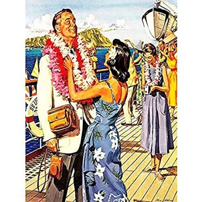 Wee Blue Coo PAINTING VACATION SCENE CRUISE SHIP DECK HAWAII LEI GARL USA PRINT 18x24 INCH LV2816