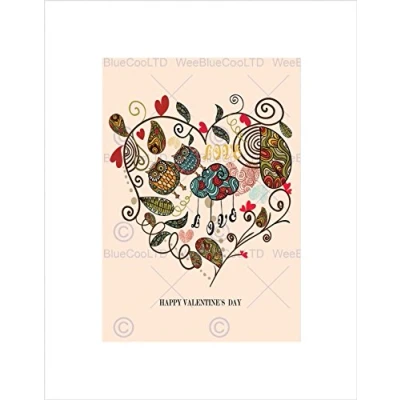 Wee Blue Coo PAINTING VALENTINE LOVE HEART OWLS LEAVES ROMANTIC FRAMED PRINT B12X8299