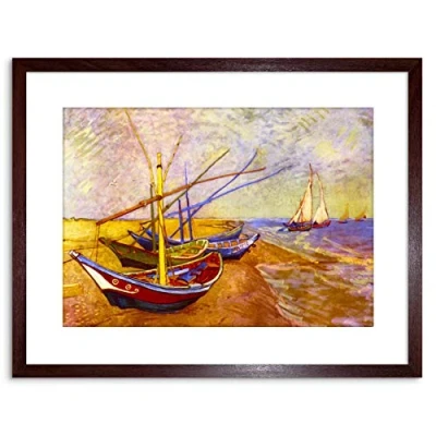 Wee Blue Coo Painting Van Gogh Boats Saintes maries Framed Wall Art Print