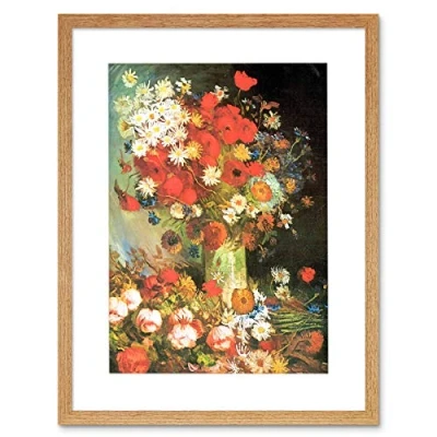 Wee Blue Coo PAINTING VAN GOGH VASE CORNFLOWERS POPPIES PEONIES FRAMED ART PRINT F97X9756