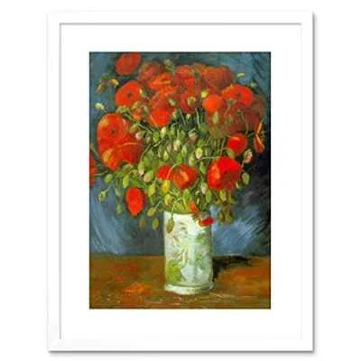 Wee Blue Coo PAINTING VAN GOGH VASE RED POPPIES FRAMED PICTURE ART PRINT F97X9169