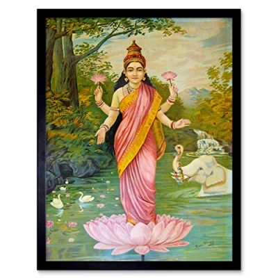 Wee Blue Coo Painting Varma Goddess Lakshmi Art Print Framed Poster Wall Decor 12X16 Inch