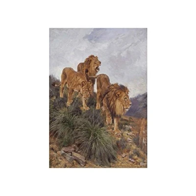 Wee Blue Coo Painting Verstagh Three Lions Walking 12x16 Wall Art Print