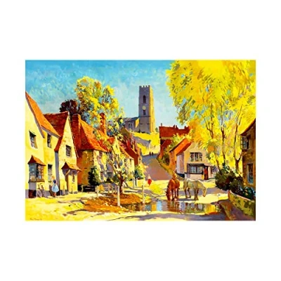 Wee Blue Coo Painting Village Scene Kersey Suffolk England Church Pond Wall Art Print
