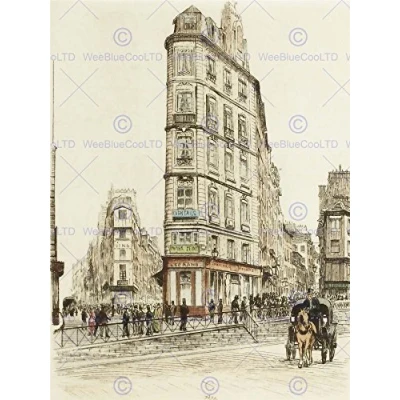 Wee Blue Coo Painting Vintage Cityscape Paris Boulevard Bonne Nouvelle Wall Art Print