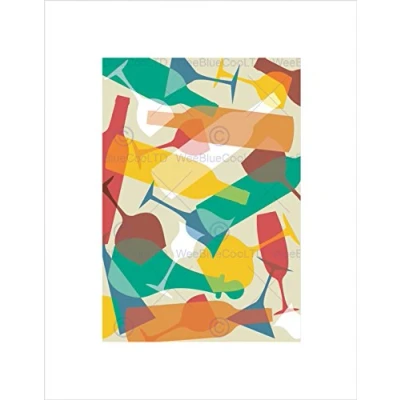 Wee Blue Coo Painting Wine Bottle Glass Design Pattern Colours Wall Art Print