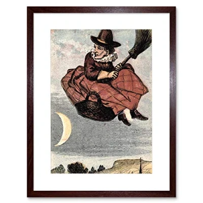 Wee Blue Coo Painting Witch Halloween Spooky Art Picture Framed Wall Print