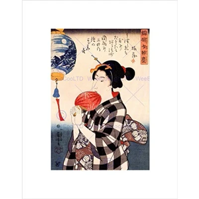 Wee Blue Coo Painting Woman Fan Geisha Utagawa Kuniyoshi Japan Wall Art Print