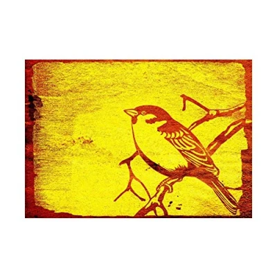 Wee Blue Coo Painting Woodcut Bird Branch Red Yellow Wall Art Print