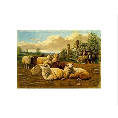 Wee Blue Coo Paintings Agricultural Landscape Sheep Dog Farm Pasture Wall Art Print