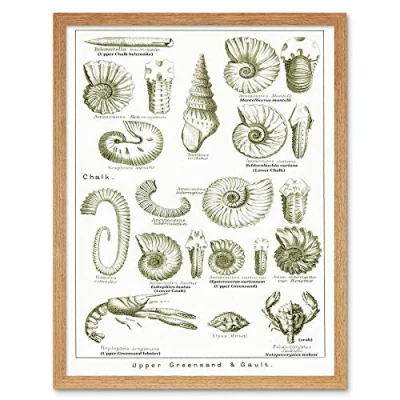 Wee Blue Coo Paintings Book Illustration Crustacean Shellfish Fossil Clay Beach Art Print Framed Poster Wall Decor 12X16 Inch