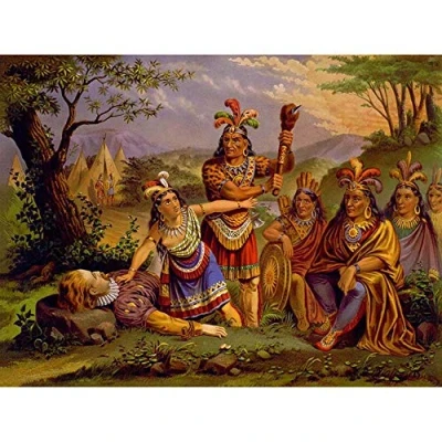 Wee Blue Coo Paintings Cultural Drawing Pocahontas Native American Art Print Poster Wall Decor 12X16 Inch