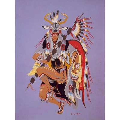 Wee Blue Coo Paintings Drawing Native American Deer Dance Feather USA Art Print Poster Wall Decor 12X16 Inch