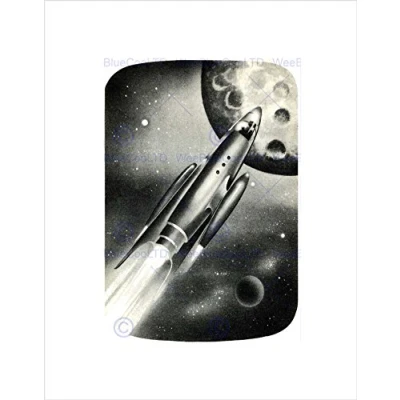 Wee Blue Coo Paintings Drawing Space Craft Ship Rocket Moon Wall Art Print