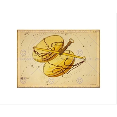 Wee Blue Coo PAINTINGS DRAWING STAR MAP LIBRA SCALES CONSTELLATION FRAMED ART PRINT B12X10922