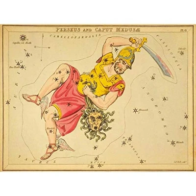Wee Blue Coo Paintings Drawing Star Map Perseus Medusa Constellation Art Print Poster Wall Decor 12X16 Inch