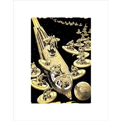 Wee Blue Coo Paintings Fantasy Sci Fi Space Alien Attack Ship Saucer Framed Print B12X9824