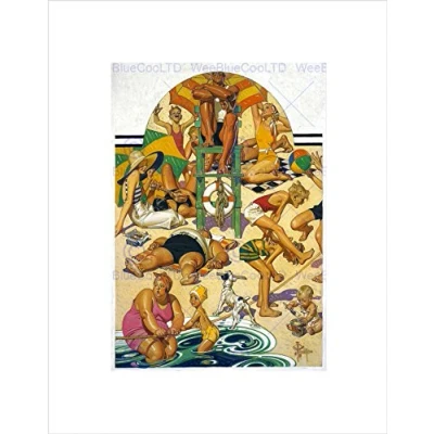 Wee Blue Coo Paintings Group Portrait Caricature Labor Day Beach Scene Wall Art Print