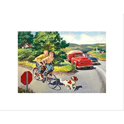 Wee Blue Coo Paintings Landscape Children Bike Car Crash Dog Framed Art Print Mount B12X9837