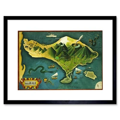 Wee Blue Coo Paintings Map Bali Indonesia Volcano Animal Cool Picture Framed Wall Art Print
