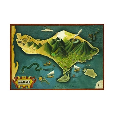 Wee Blue Coo Paintings Map Bali Indonesia Volcano Animal Cool Picture Wall Art Print