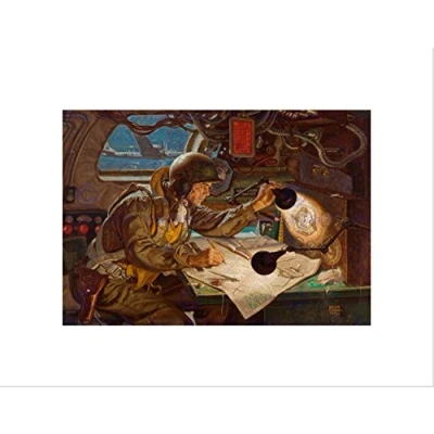 Wee Blue Coo Paintings Portrait Bomber Navigator Map Plane Black Framed Art Print B12X9881