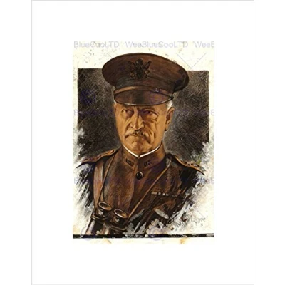 Wee Blue Coo Paintings Portrait Wwi American General Pershing Framed Art Print Mount B12X9927