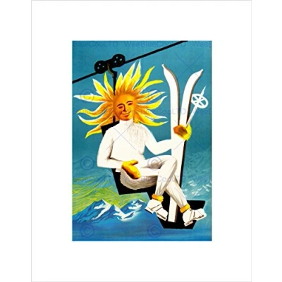 Wee Blue Coo PAINTINGS SURREAL FANTASY SUN SKI LIFT SNOW MOUNTAIN FRAMED ART PRINT B12X7550