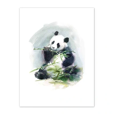 Wee Blue Coo Panda Eating Watercolour Art Print Canvas Premium Wall Decor Poster