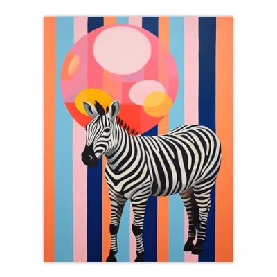 Wee Blue Coo Party Animal Zebra Stripes and Balloon Orange Pink Fun Oil Painting Extra Large XL Wall Art Poster Print
