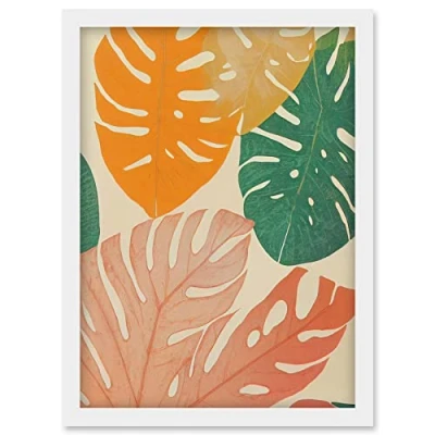 Wee Blue Coo Pastel Monstera Leaves Botanical Artwork Framed Wall Art Print A4