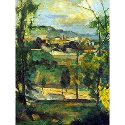 Wee Blue Coo Paul Cézanne Village Behind Trees Ile De France Old Painting Art Print Poster Wall Decor 12X16 Inch