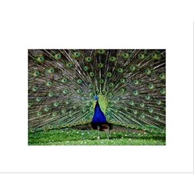 Wee Blue Coo PEACOCK BIRDS FEATHER BLACK FRAME FRAMED ART PRINT PICTURE MOUNT B12X9448