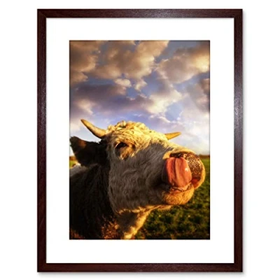Wee Blue Coo PHOTO ANIMAL COMPOSITION COW LICK CATTLE HEAD FRAMED PRINT F97X5457