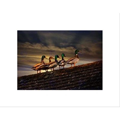 Wee Blue Coo PHOTO ANIMAL COMPOSITION DUCK DRAKE MALLARD ROOFTOP FRAMED ART PRINT B12X12993