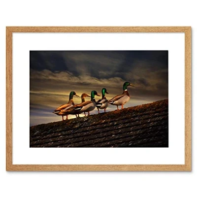 Wee Blue Coo Photo Animal Composition Duck Drake Mallard Rooftop Framed Wall Art Print