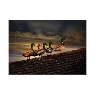 Wee Blue Coo Photo Animal Composition Duck Drake Mallard Rooftop Wall Art Print