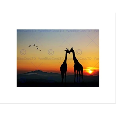 Wee Blue Coo Photo Animal Composition Giraffes Silhouette Sun Wall Art Print